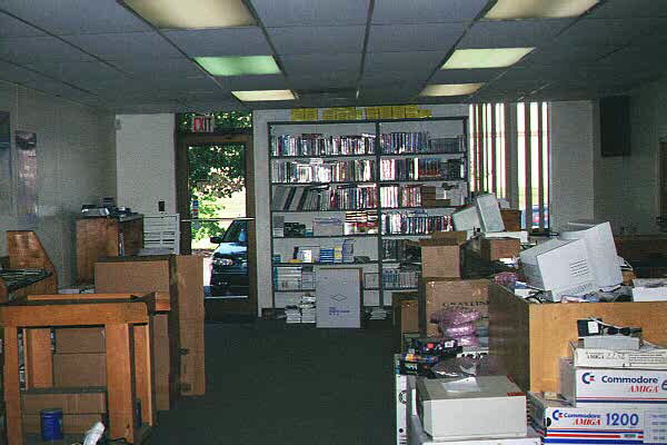 While the gentleman were brainstorming in the back for four hours (yikes) I picked up on a few "factoids": I was told that Software Hut, owned by Mr. Joey Muoio (that's "MOY-OH") has been in business since 1982. They are an authorized Amiga dealer and assembler (and it would appear, repair center) with the majority of their business taken on the phones that rang constantly while we were there, with the balance of their fiscal health maintained by a comparitively small (compared to their phone orders) number of walk-ins during the course of any given day. "Joey" was not in on Thursday, August 6, 1998, during the hours that we were present. There were two individuals we had dearly wished to meet, one of which was Mr. Muoio; the other, I was led to believe, was his mother, whom we had fondly dubbed "Grandma". Many's the time when calling Software Hut's order line we have spoken to this delightful and pleasant woman, knowledgeable and eager to help, who would occasionally call out (presumably across the shop) "JO-EEEEEEEEEEEEE!!!!!!!!" when confronted with a query for which she did not have an immediate answer. "Grandma" and "Joey", we missed you. (*)