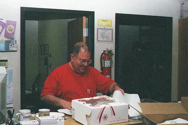 Goodies, indeed! Seems Software Hut has a gentleman customer from Connecticut (who used to be employed as a baker) who comes to town twice-a-year-ish bearing culinary gifts. We were offerred to partake in the delightfully sweet-looking repast, but I politely declined so as not to bounce off the walls to be followed by a crash (I know, bad word). The Designated Driver must avoid such things :)